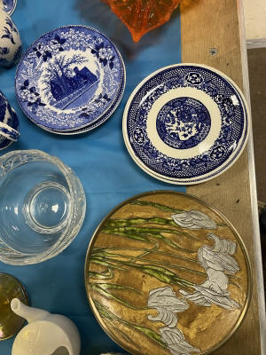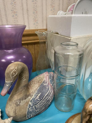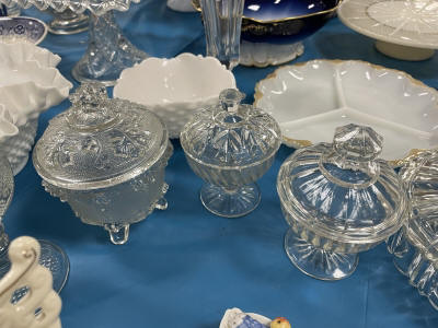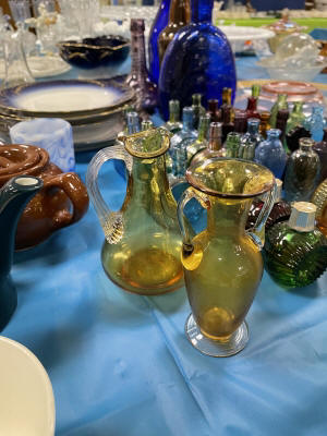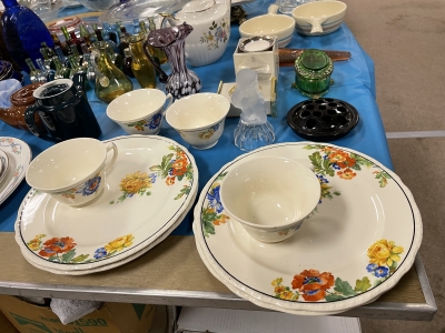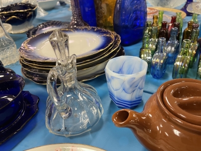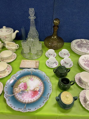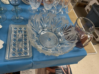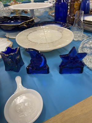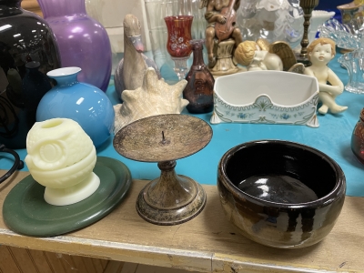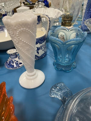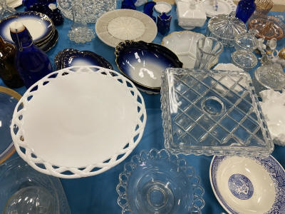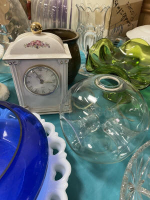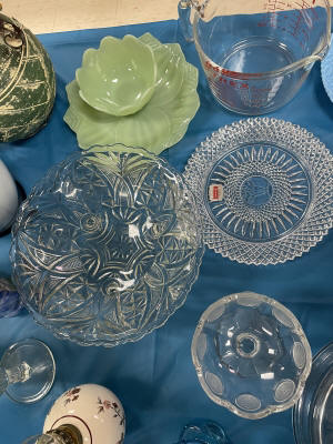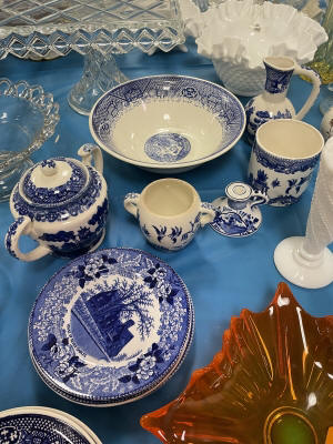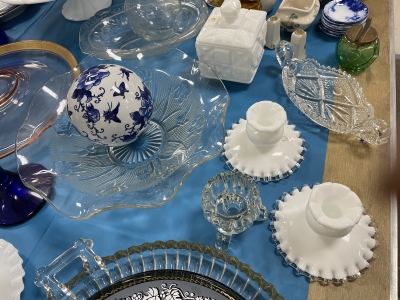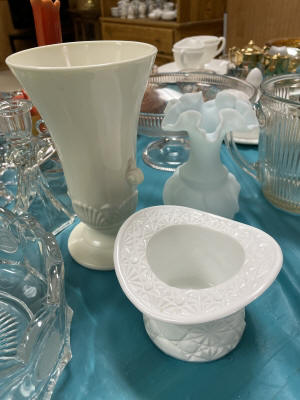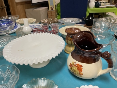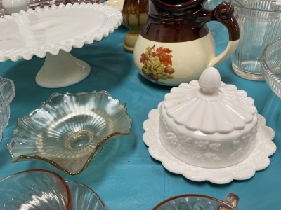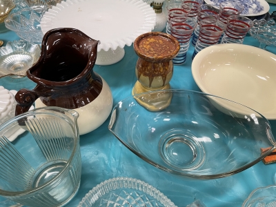 ANTIQUES & COLLECTIBLES:Crocks, Quilts, Vintage Apparel: Cub Scout, Boy Scout, etc., Barbie Dolls, Charlie Brown & Snoopy, McCoy, Homerlaughlin, Lomges, Ironstone, Pfaltzcroff, Stanford Shire, Wall Pockets, Glassware, Souvenior, Westmorland, Depression, Imperial, Fenton, Fostoria, Money Banks, Etc.