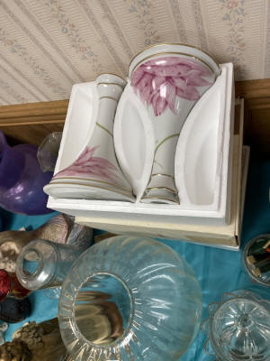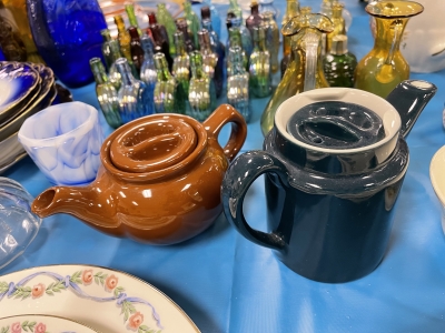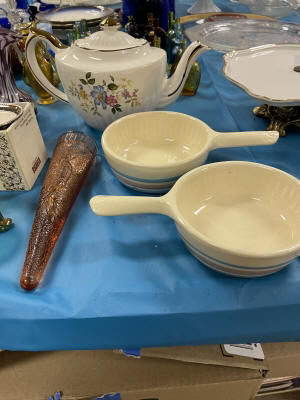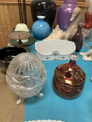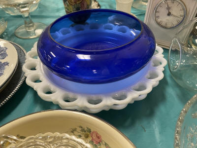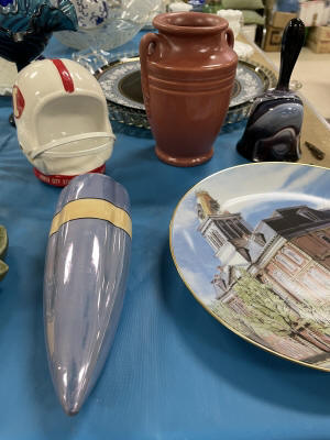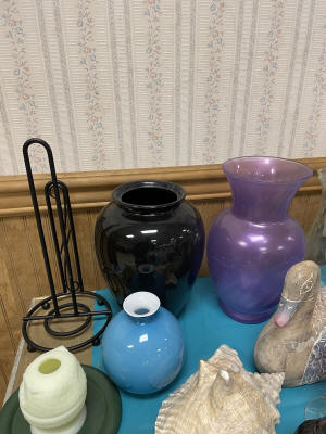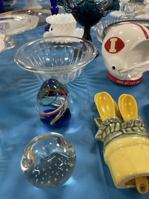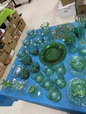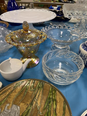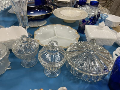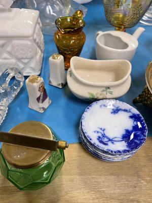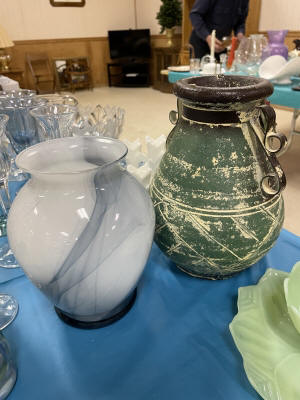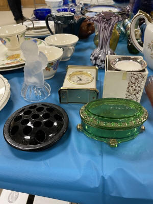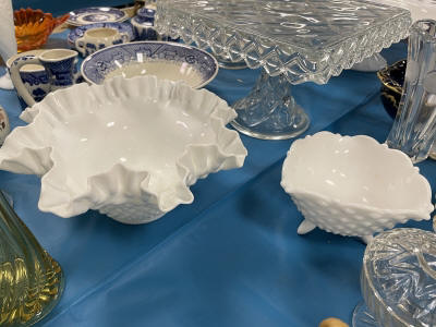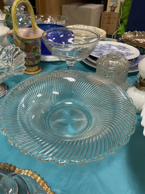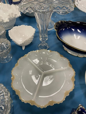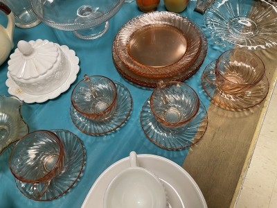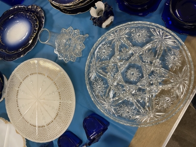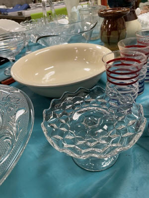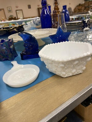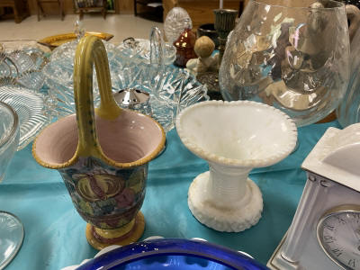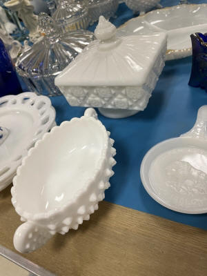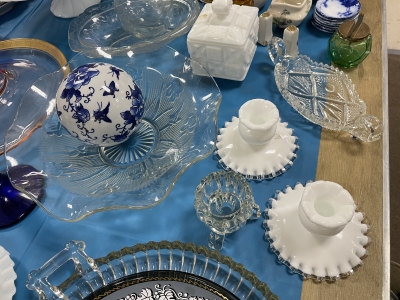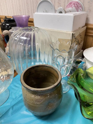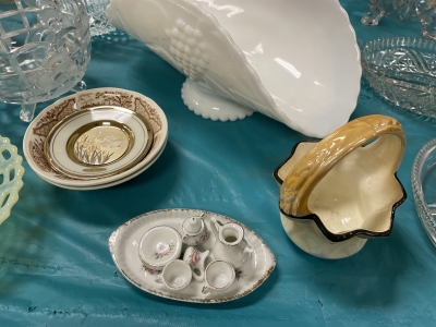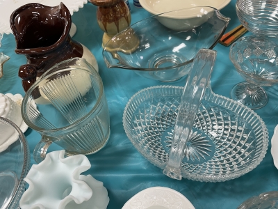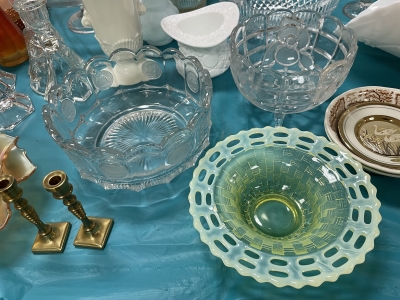 ANTIQUES & COLLECTIBLES:Crocks, Quilts, Vintage Apparel: Cub Scout, Boy Scout, etc., Barbie Dolls, Charlie Brown & Snoopy, McCoy, Homerlaughlin, Lomges, Ironstone, Pfaltzcroff, Stanford Shire, Wall Pockets, Glassware, Souvenior, Westmorland, Depression, Imperial, Fenton, Fostoria, Money Banks, Etc.